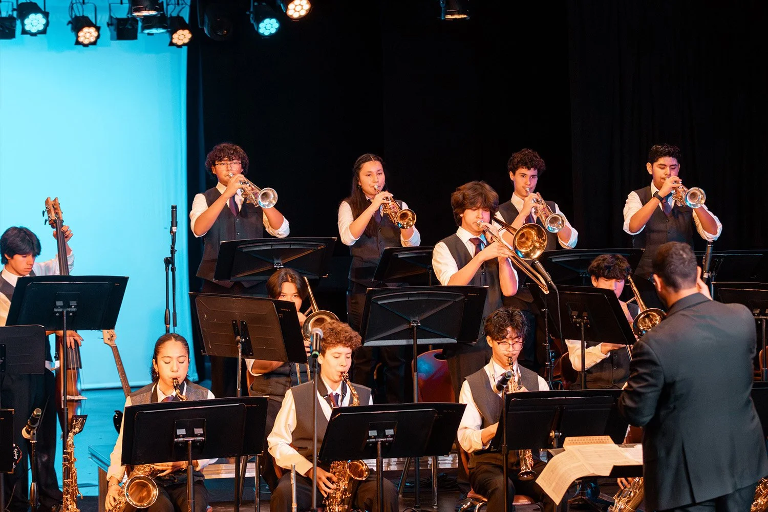 Jazz Ensemble I is the premier, audition-only jazz ensemble at Gahr High School, designed for advanced, highly committed musicians. This performance-based ensemble provides students with a professional, real-world jazz experience, performing a wide range of styles including swing, bebop, Latin, funk, fusion, and contemporary jazz.