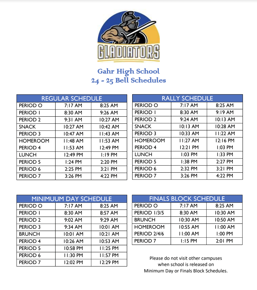 All students should have completed Gahr High School registration. Please make sure you’ve turned in $60 for an ASB card and $60 for transportation (otherwise it’s $150 for transportation). This can be turned in directly to the school at the finance window in the front office.