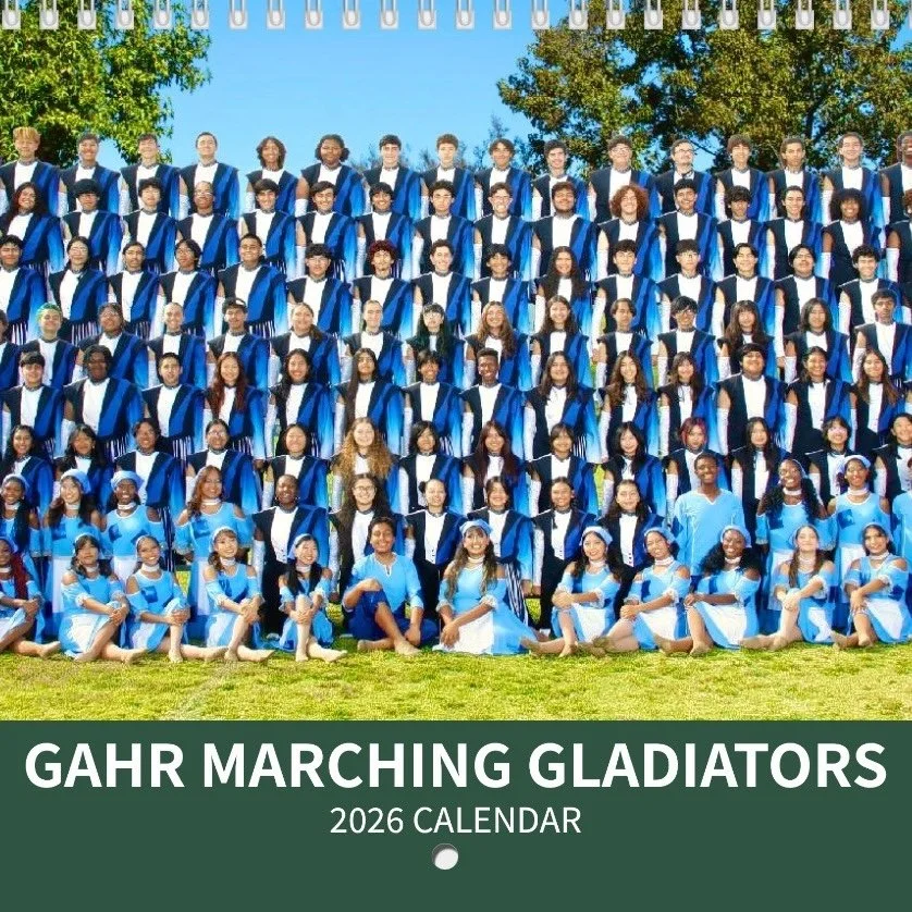 Relive the season all year long with the official 2026 Gahr Marching Gladiators 11” x 17” wall calendar, featuring beautiful photos from rehearsals, competitions, booster support, and championship performances. It’s a perfect gift for family, friends, and supporters, with limited quantities available.