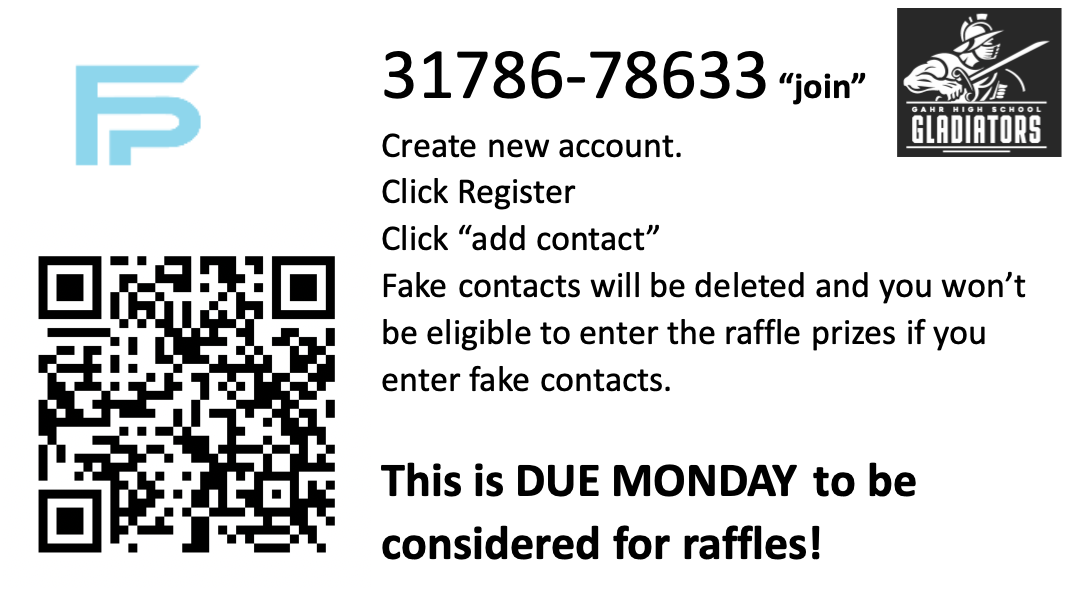 Students who submit 20 contacts by Monday at 11:59PM will be entered into raffles for $15 Chick-fil-A gift cards and a brand new pair of Apple AirPods. You’ll also get free Gatorade at a Saturday practice. The section that raises the most money will win a PIZZA PARTY! And the individual student that earns the most money will win dinner cooked by Mr. Loney (anything you want, cooked from scratch).