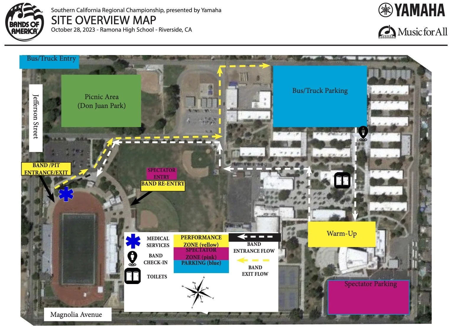 BANDS OF AMERICA SOUTHERN CALIFORNIA REGIONAL – This Saturday 10/28 is the Bands of America Southern California Regional Championship at Ramona High School in Riverside. This is an all day event, and depending on Prelims, we have the possibility of performing a second time in Regional Finals. PARENTS: PLEASE CLICK HERE TO VOLUNTEER TO HELP.