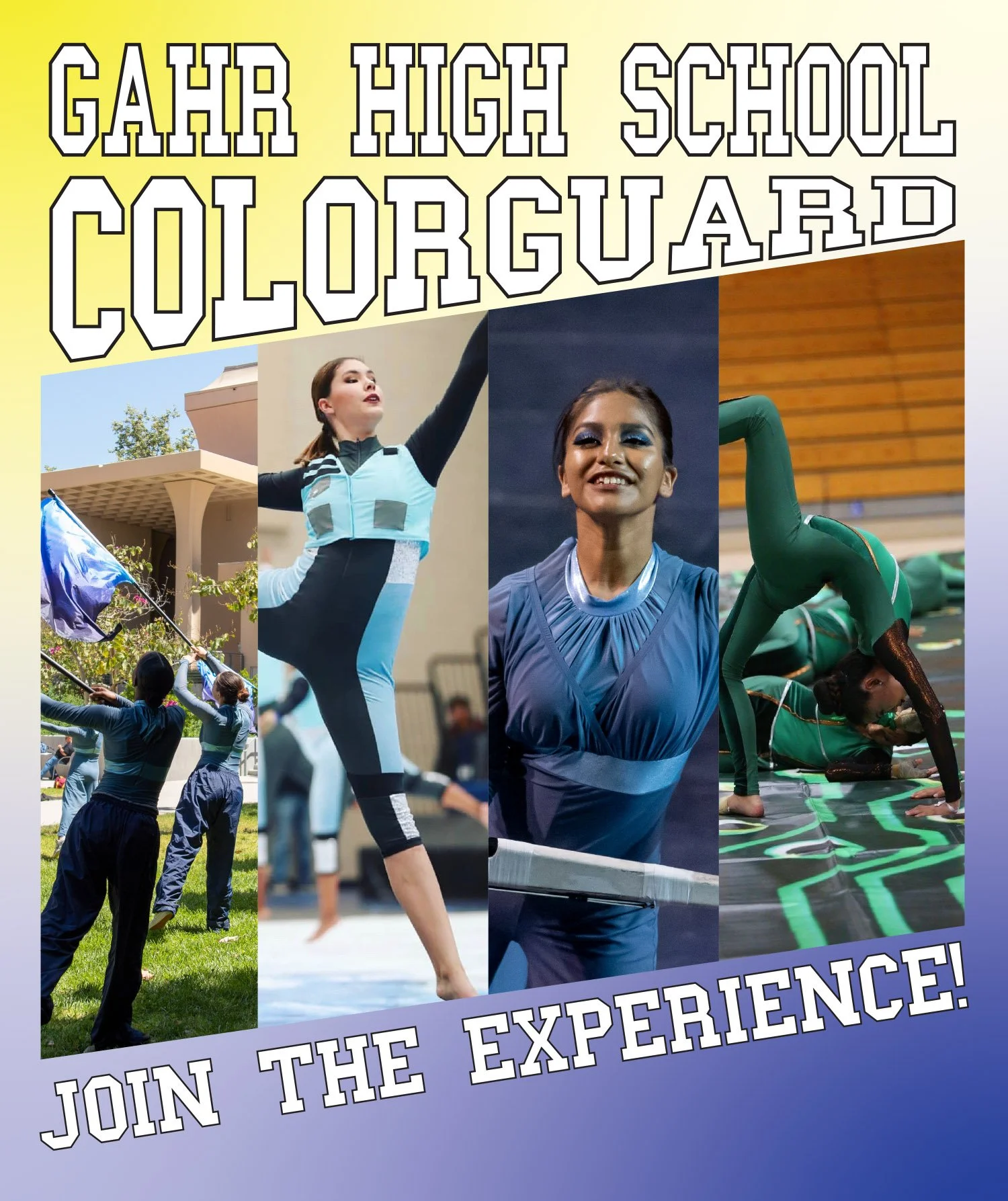 COLOR GUARD CLINICS CONTINUE THIS WEEK — We had an awesome two days of Color Guard Workshops last week with over 30 students who signed up! It’s not too late to come check it out if you know someone who might be interested in joining the Color Guard. Just have them come this Tuesday and Thursday from 3:30-6:00PM in the MPR! No experience is required and we will teach them everything they need to know :)
