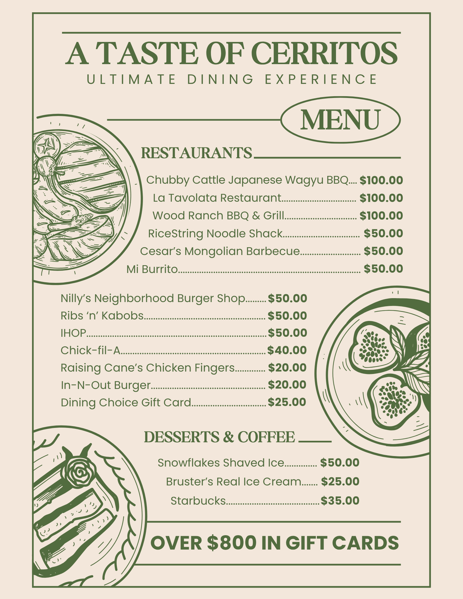 We are especially excited about this year’s raffle, featuring some incredible prizes – including hundreds of dollars in restaurant gift cards, Topgolf, a family 4-pack to Raging Waters, a Loungefly Disney backpack, and a family 4-pack of tickets to Disneyland! Please see below for a full listing of all the items in each basket.