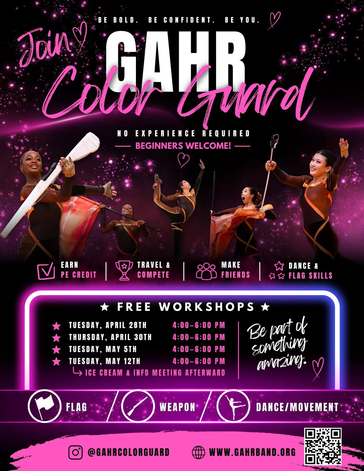 Bring a friend and come see what Gahr Color Guard is all about! Join us this Tuesday from 4:00-6:00PM and take the first step toward an amazing year!