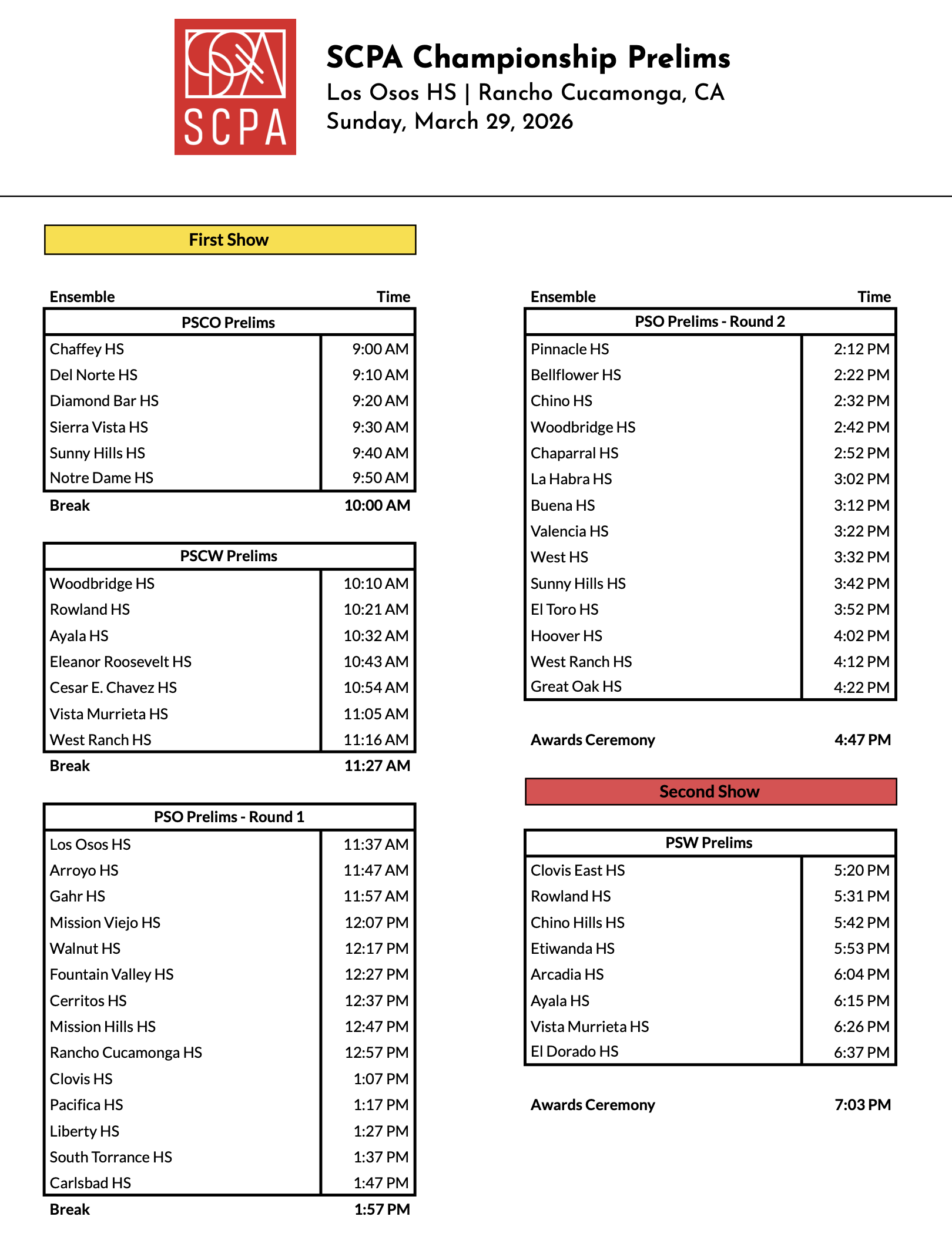 SCPA INFO: https://scpauploads.s3.amazonaws.com/hosts/9625816870-Weekend1PrelimsParticipantInformation.pdf